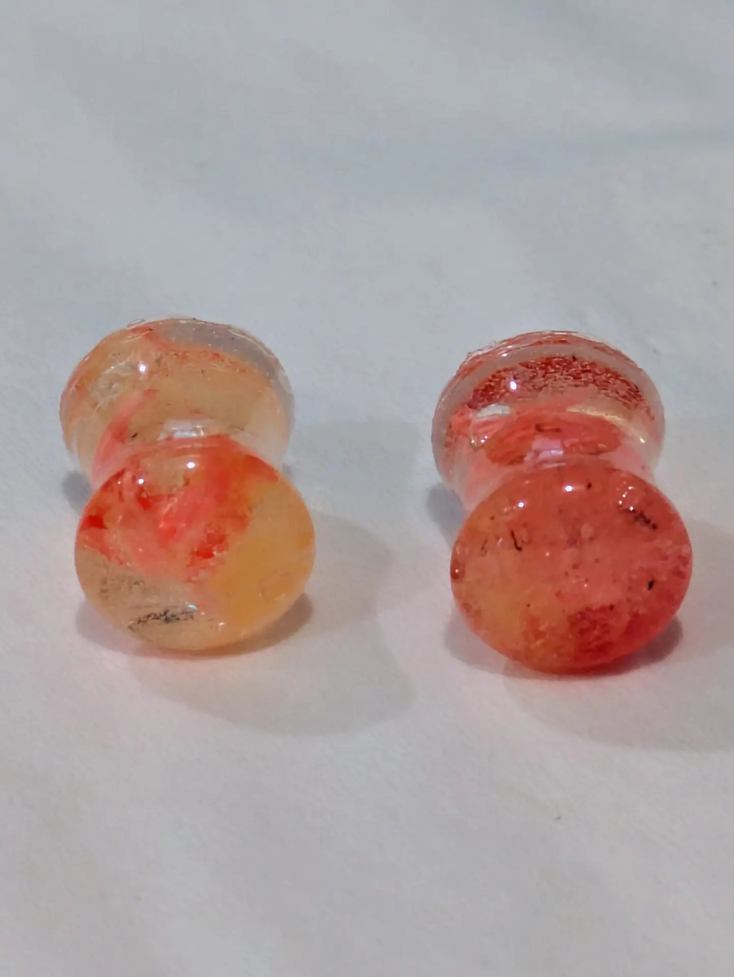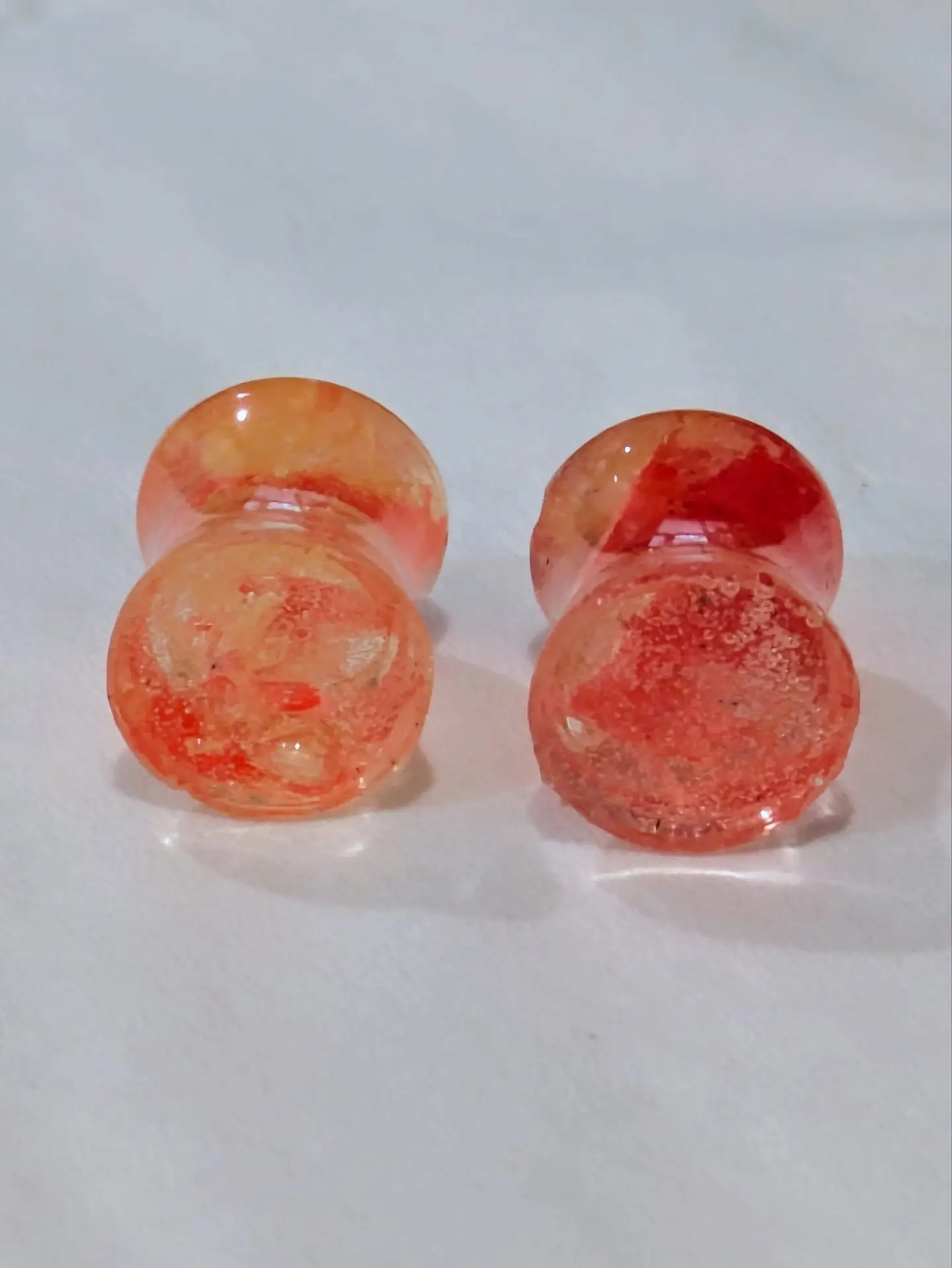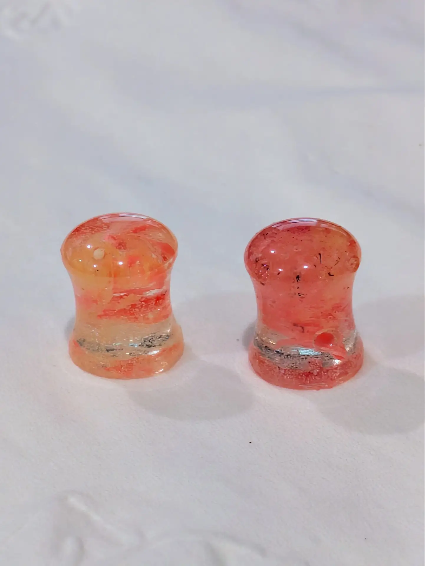 Handmade and one of a kind resin gauges for stretched ears made with Up-Cycled UV & Metallic Polypro Shavings from our Hoops!
