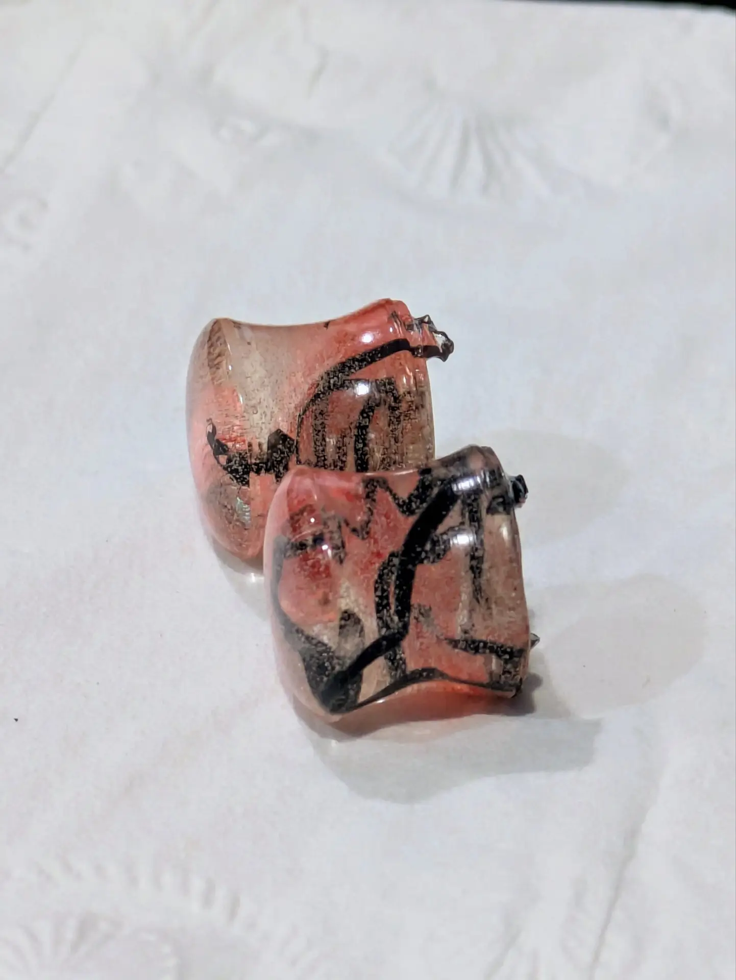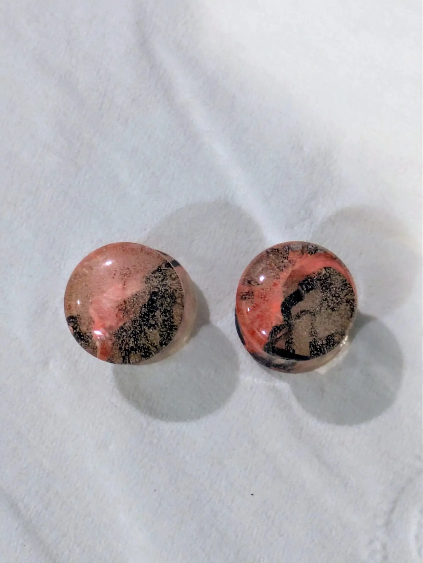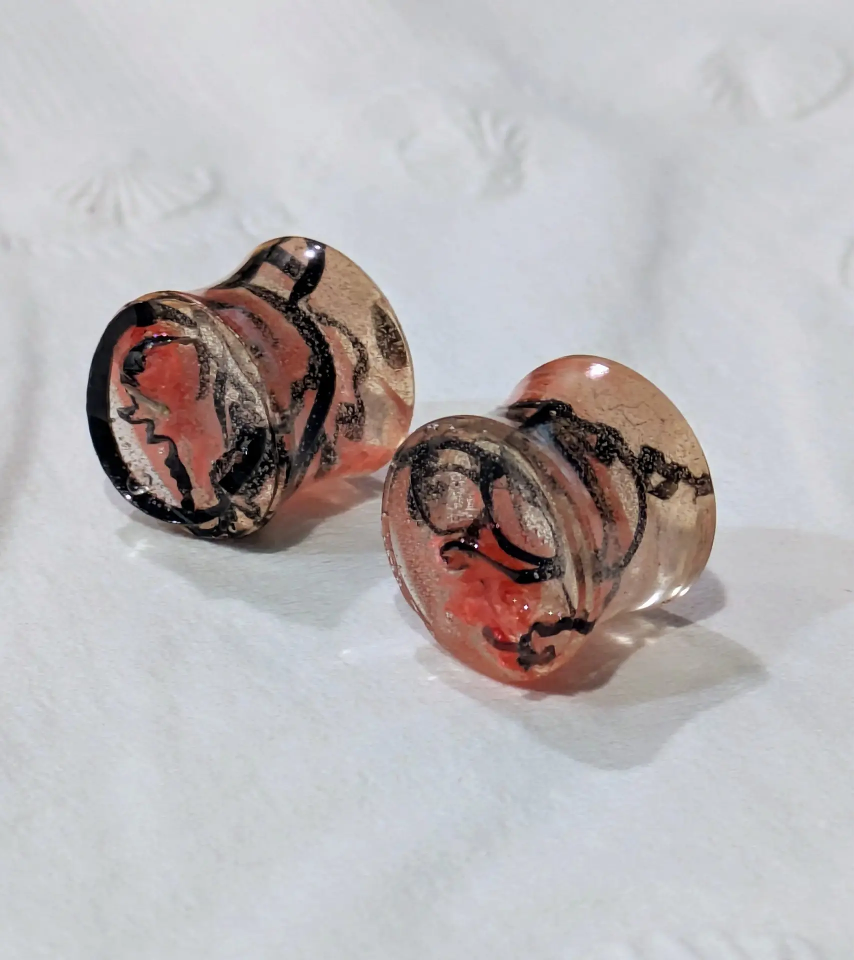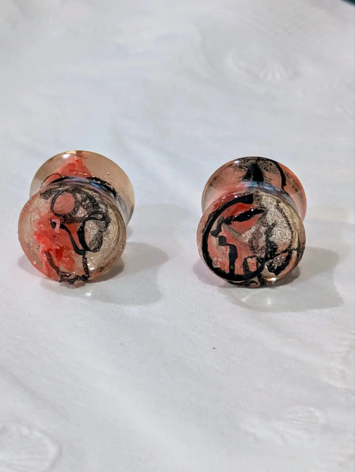 Handmade and one of a kind resin gauges for stretched ears made with Up-Cycled UV & Metallic Polypro Shavings from our Hoops!