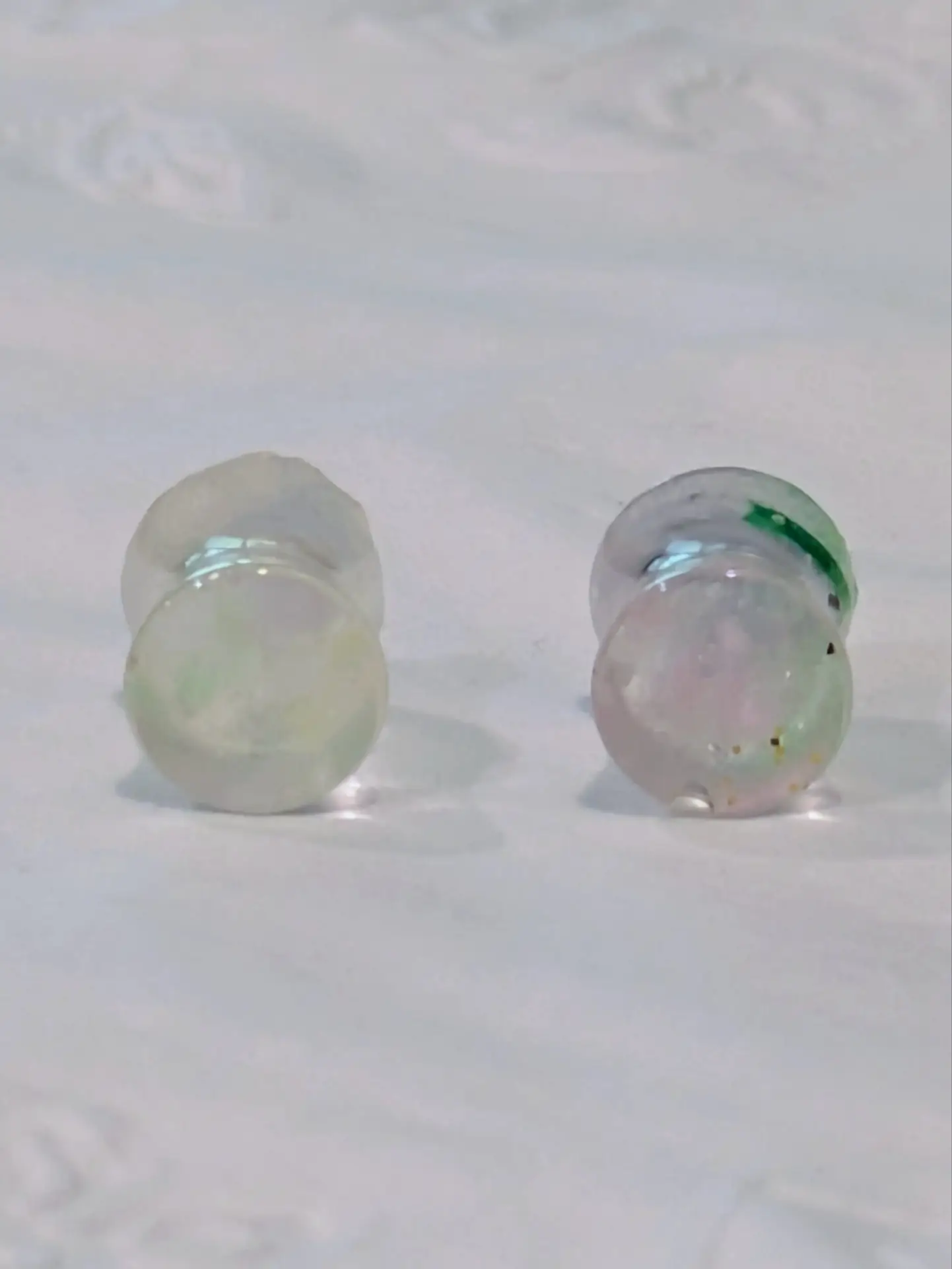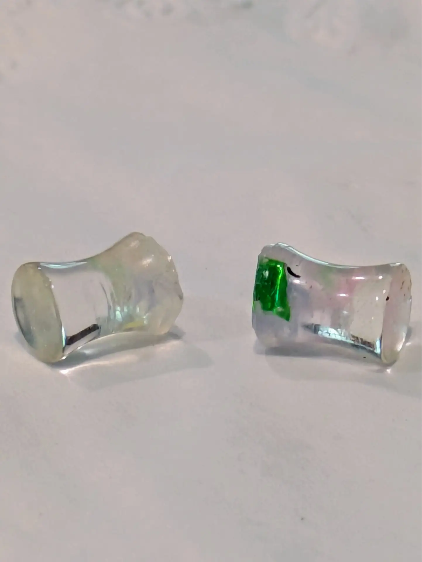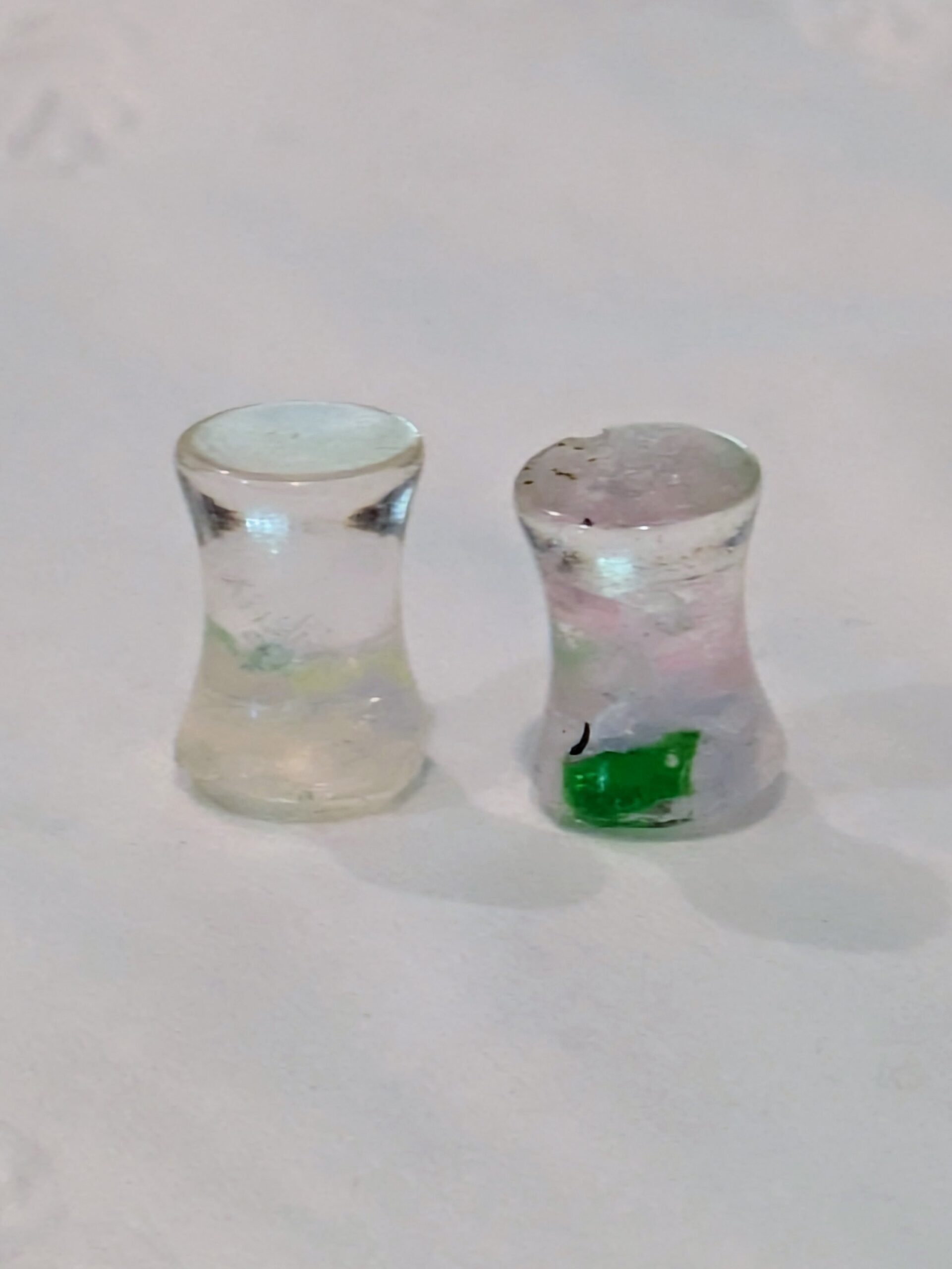 Handmade and one of a kind resin gauges for stretched ears made with Up-Cycled UV & Metallic Polypro Shavings from our Hoops!