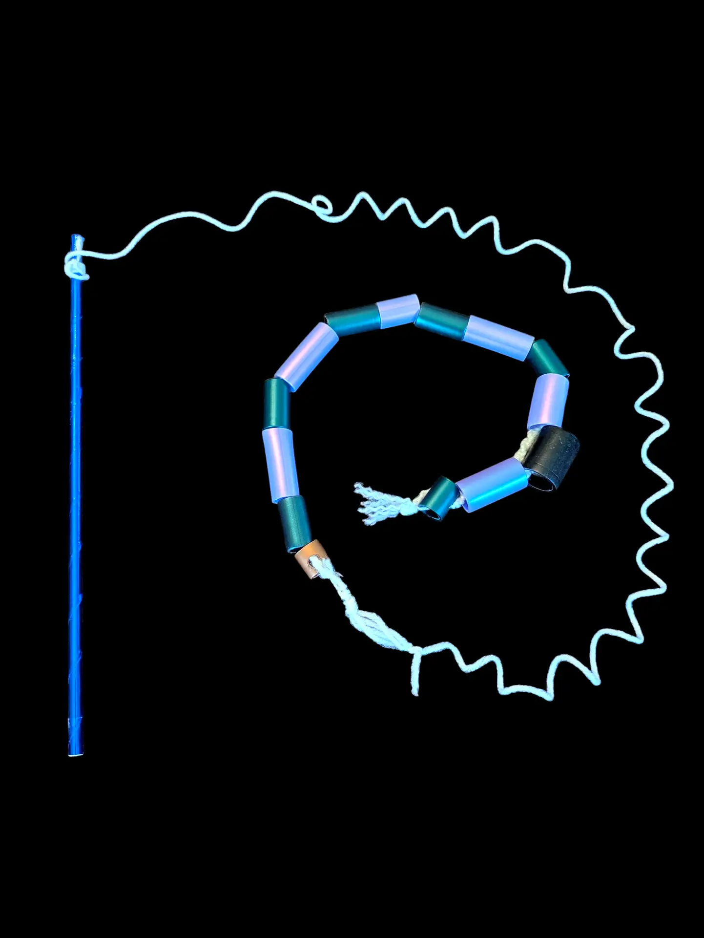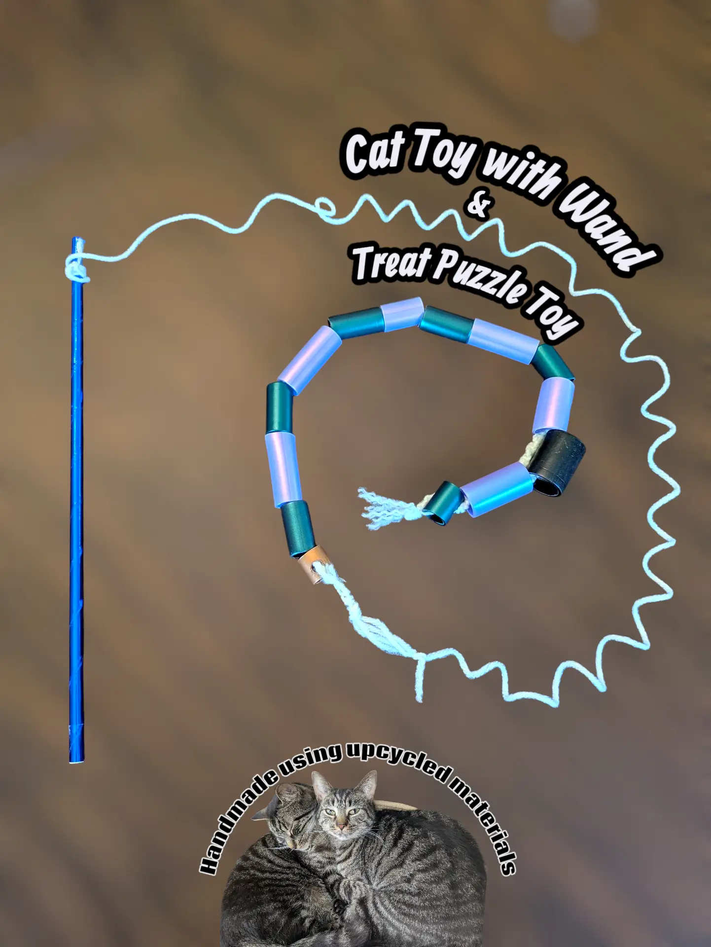 Cat Toy Wand & Treat Puzzle Toy made using recycled hula hoop scraps