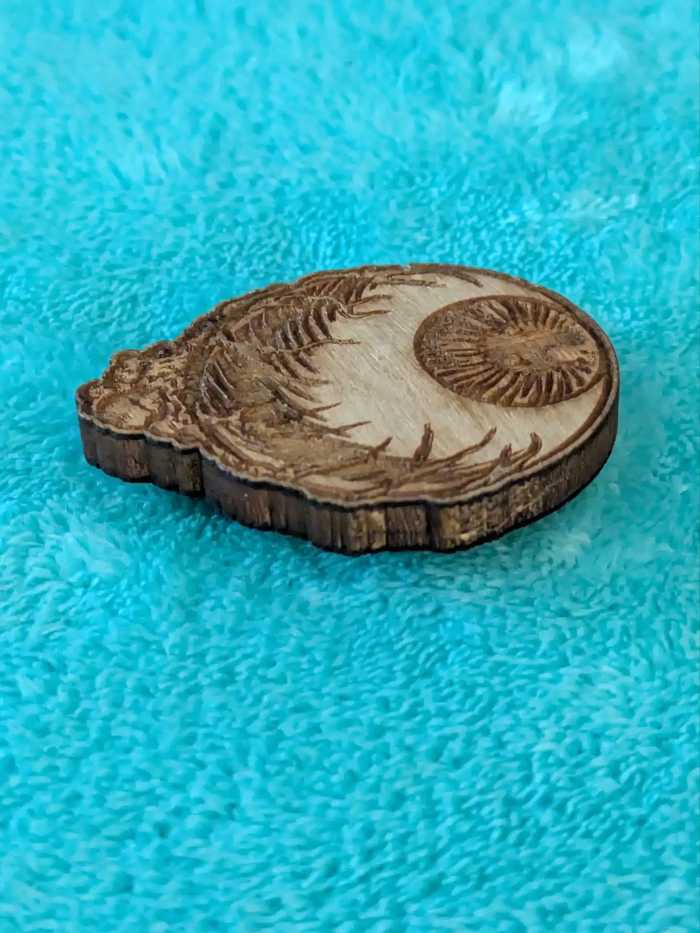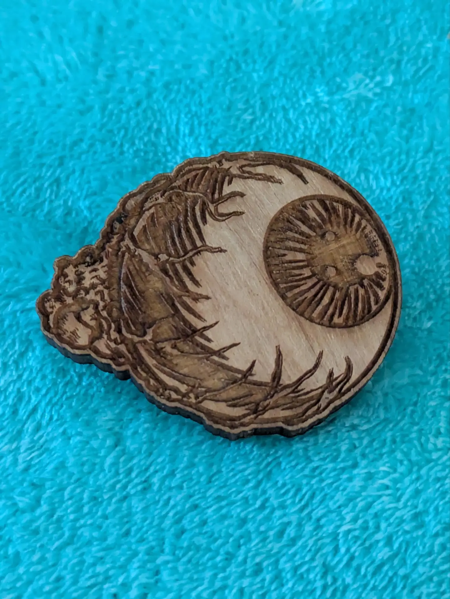 Eyeball Pin made of wood, double posted.