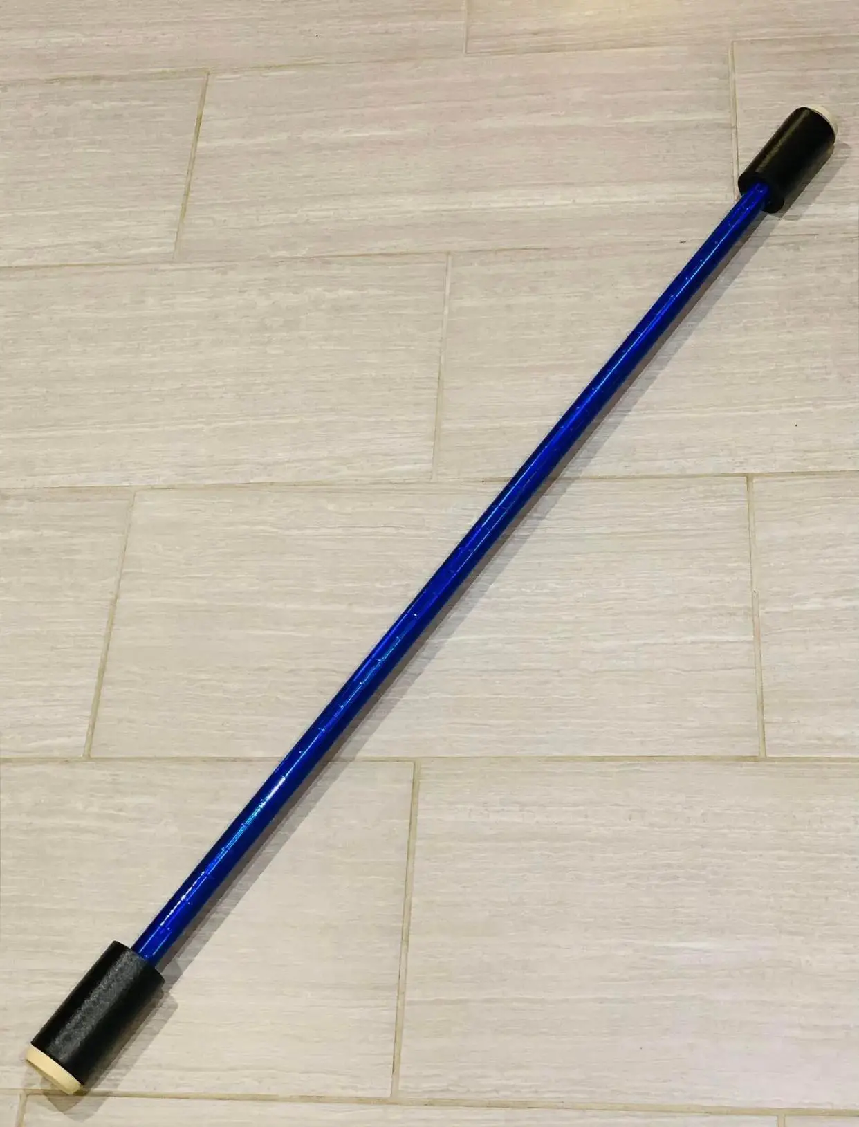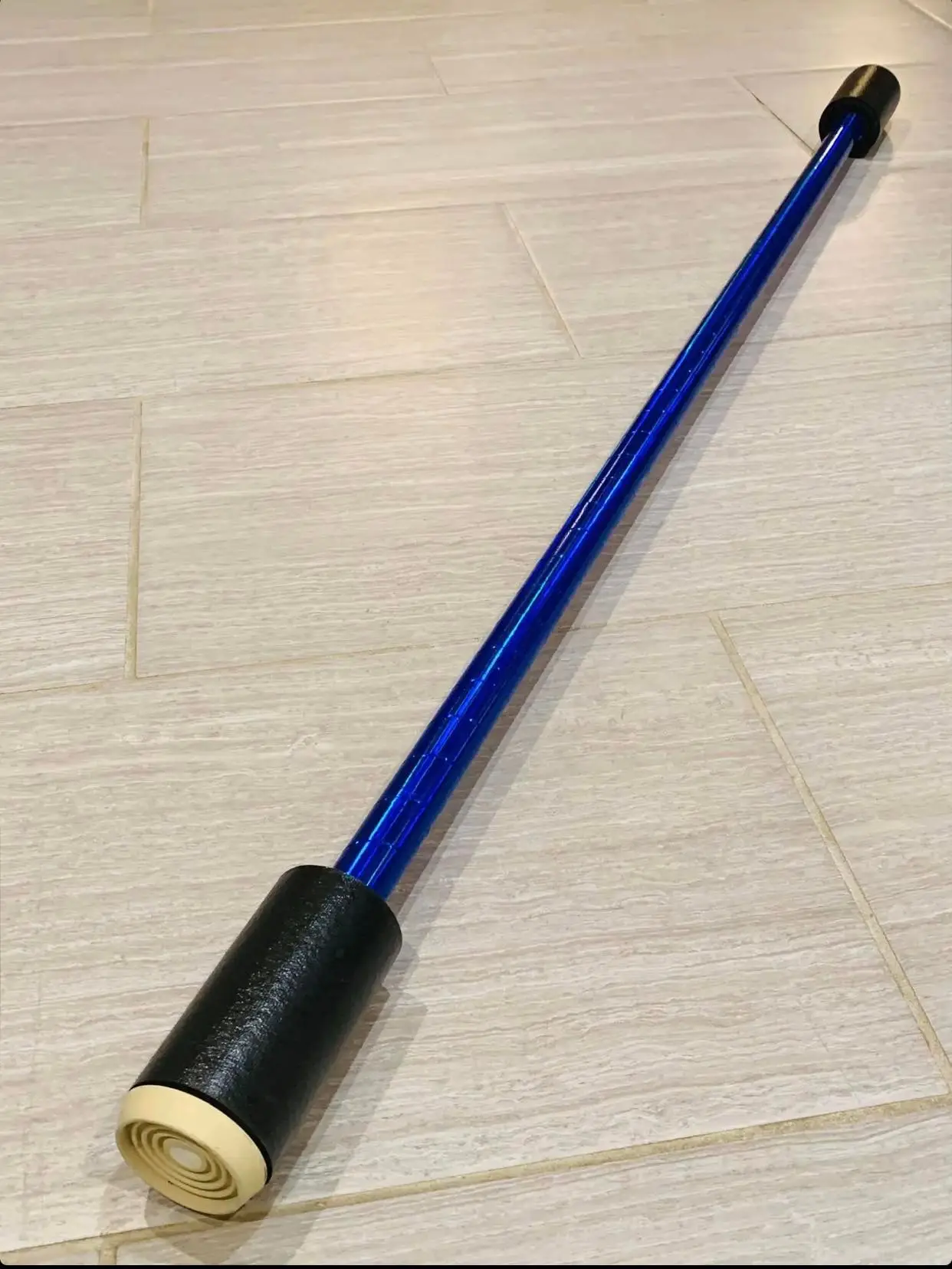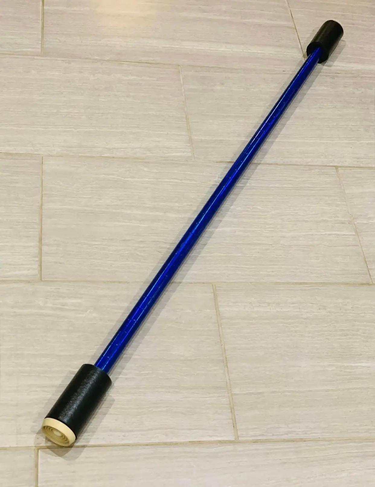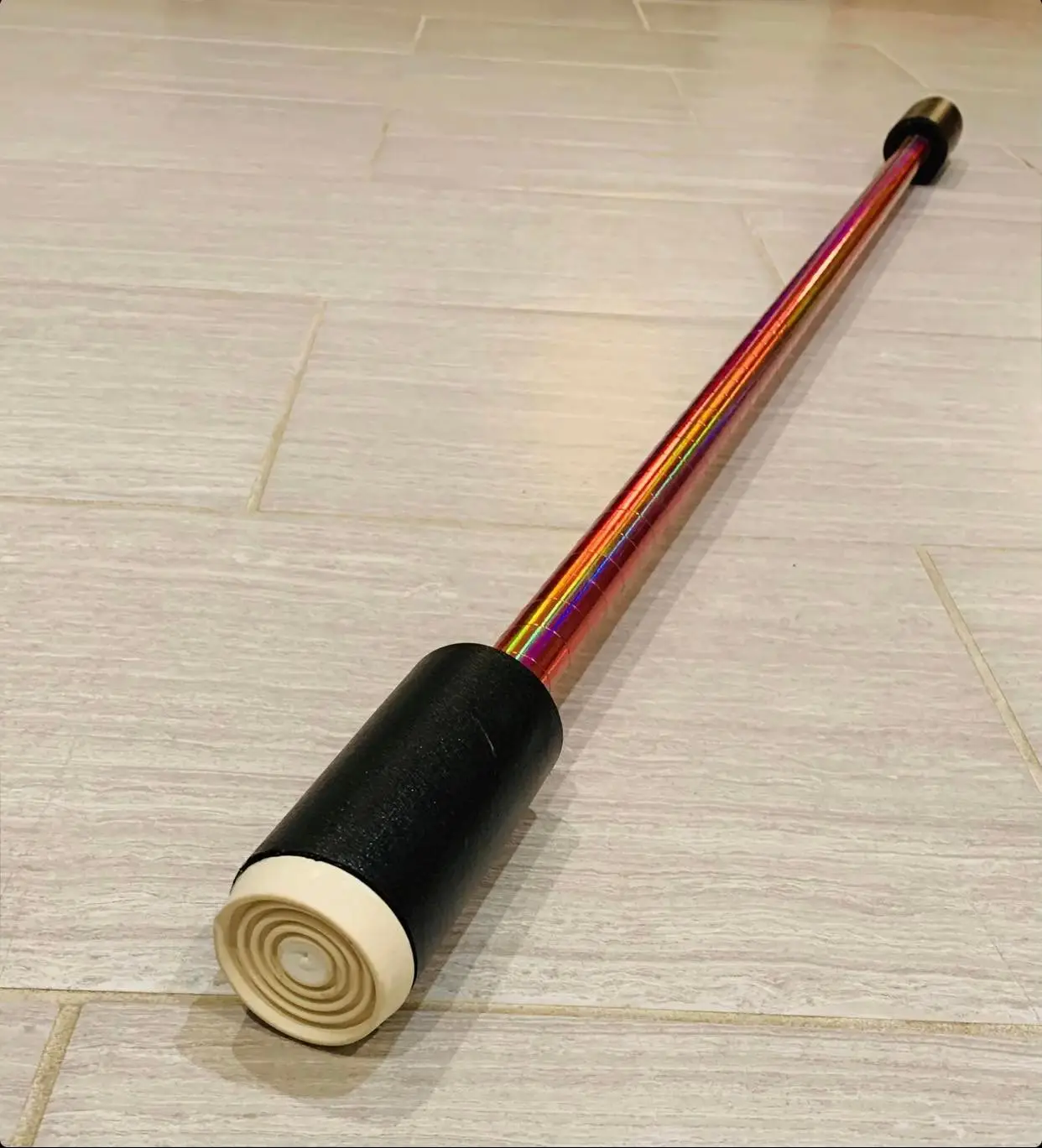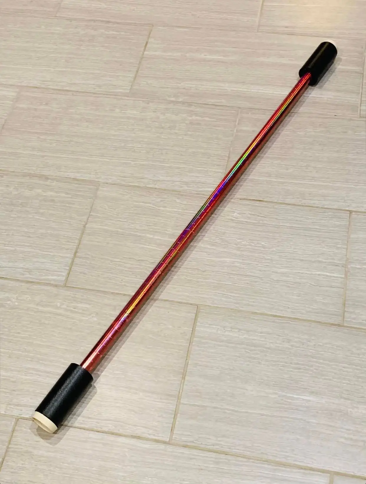 Made with 1.2 meter wooden dowel, hand taped with your choice of mirror tape. The bumper ends of our staffs are made with rubber pads and hand rolled foam reinforced.